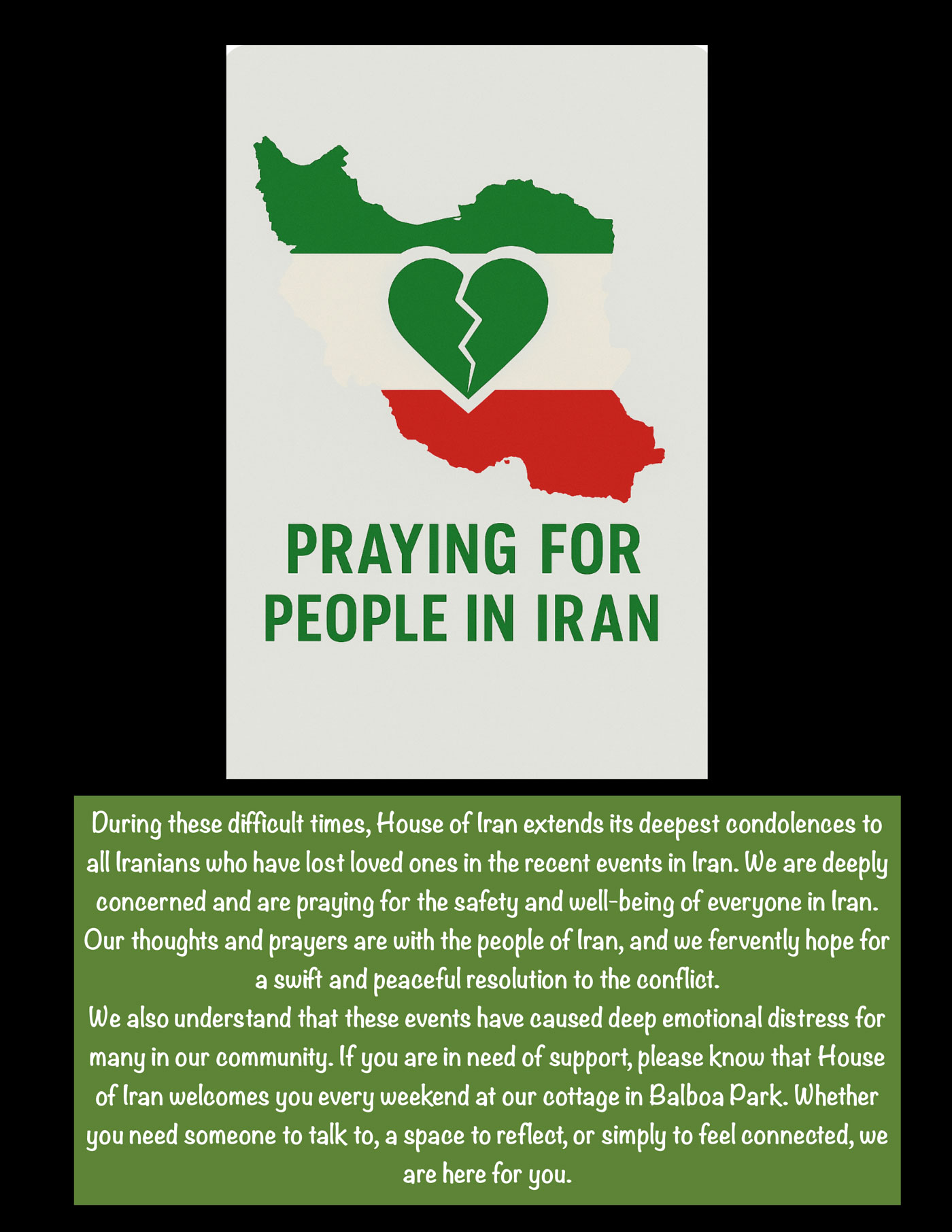 House of Iran is open to the public every Saturday and Sunday from 11:00 a.m. to 4:00 p.m. It hosts special events and general meetings.